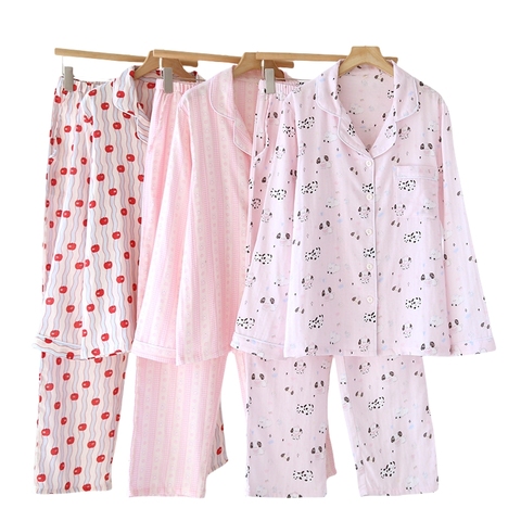 Pijama Popular de algodão Pijama para o Outono Pijama Tamanho Grande Conjunto de Manga Longa 2 Conjuntos Pc Pijama para As Mulheres